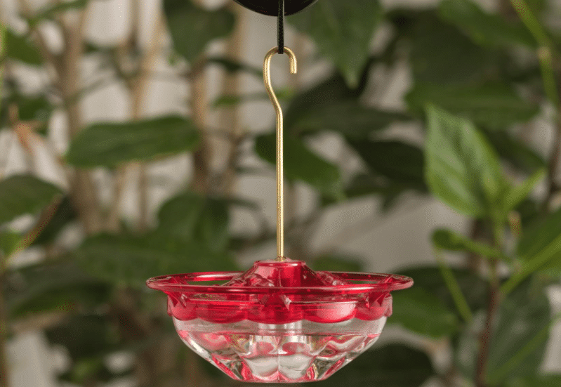 Hummingbirds prefer to visit fresh, clean feeding stations. To make that easier, this feeder comes apart. The dish-style basin makes it easy to clean every inch inside the feeder. This design also allows for effortless filling, resulting in fewer spills as you pour the nectar. Remember to clean your feeder at least once per week with a mild soap and water solution to prevent mildew buildup.